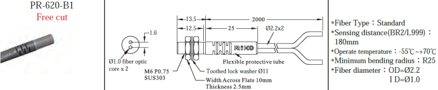 Fibra Standard, M6, 2m, salida flexible, Riko